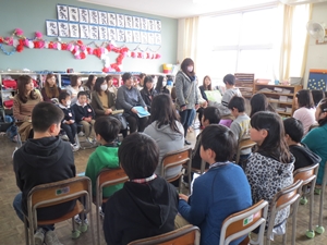 下級生たちから、感謝の気持ちをこめた「となりのトトロ」の替え歌が贈られると、感動のあまり涙ぐむ6年生もいました。
