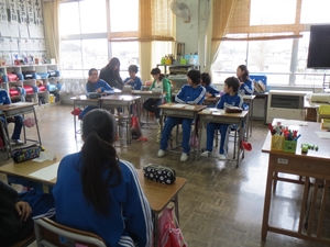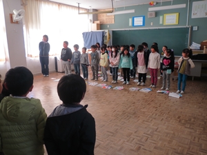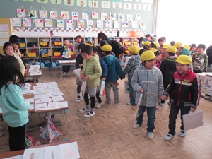 2016年2月25日 10時00分 2月24日(水)、稲田幼稚園さんと岡ノ内幼稚園さんの園児のみなさんが小学校見学に訪れました。出迎えたのは1年生です。この日のために練習や準備を進めてきた音読を発表したり、お店屋さんごっこをしたりして、「後輩」たちを楽しませていました。1年生は、お兄さん・お姉さんぶりを存分に発揮していました。
