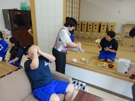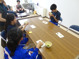 2017年6月9日 16時35分 ボランティア部のみなさんが放課後に活動しました。先生の指導のもと、お抹茶をお茶碗に入れ、お湯を注ぎ、茶せんでシャカシャカ。とってもおいしいお茶を入れていただきました。みんなはじめてとは思えない手つきでした。「結構なお点前でした。」、「お粗末様でした。」