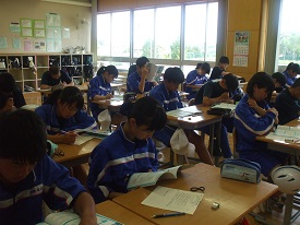 2017年6月12日 16時25分 進路学習を進めています。進路希望調査を行い、次は高校体験入学の希望をとっています。しっかり進路について学びながら、自分に合った進路を選択していってほしいものです。生徒のみなさんも真剣に授業に臨んでいました。