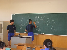 2017年6月20日 17時54分 7月18日に予定されている小中交流活動に向けて、3年生が担当するミニ運動会についての話し合いを行いました。どんな種目にしようかな?分担どうする?みんな真剣というか楽しそうに話し合っていました。どんな内容になるのか小学生のみなさん、楽しみに待っててくださいね。