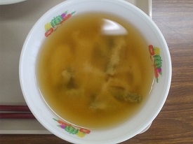 2017年6月21日 12時13分 本日の給食のメニューは、「麦ご飯、鶏肉の照り焼き、おかか和え、じゃがいもといんげんのみそ汁」です。照り焼きは、ほんのり焦げ目がいいですね。味付けもちょっぴり甘口で、子供たちも大好きです。これはおいしかったです。おかか和えは、おかかの風味と野菜の食感が良いですね。とてもさっぱりしました。みそ汁は、いんげんが入っていて、旬の味ですね。おいしかったです。本日もおいしくいただきました。ごちそうさまでした。