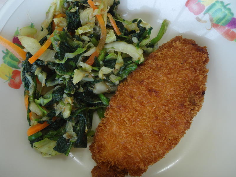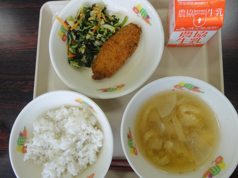 2018年12月3日 13時28分今日のメニューは、「麦ごはん、牛乳、白身魚フライ、三色おひたし、大根と油揚げのみそ汁」です。白身魚フライに良く合うソースがついており、魚のおいしさがさらに増し、ごはんをおいしくいただきました。三色おひたしとみそ汁で野菜も完璧に補給できました。そして、おいしかったです。ごちそうさまでした。