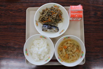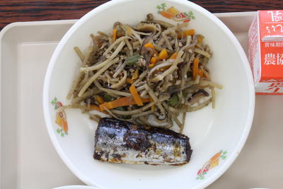 2019年9月3日 14時16分今日はかみかみ献立。さんまの甘露煮は甘さも塩加減もベスト,味もよくしみています,骨までかみかみ。金平ごぼうはひき肉とシイタケのコクがごぼうの香りを引き立てて,よーくかみかみ。みそ汁は油揚げがいい仕事をしてます,えのき茸をかみかみ。今日もごちそう様でした。大満足。