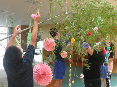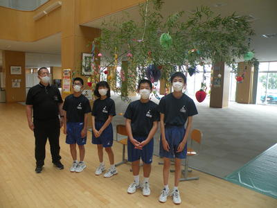 2020年7月1日 14時20分皆さんもご存じのように、7月7日は七夕です。そうです、今朝の竹は七夕飾りに使用するものでした。用務員の深谷さんを中心にりんどう学級の生徒たちと進めてきました。「岩瀬七夕まつり」、これを機会にコロナウイルスを撃退させたいものです。全校生徒の皆さんも願い事を短冊に書いて飾ってみてはいかがでしょうか。保護者の皆様もお子さまの送迎時にでもぜひご覧ください。