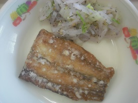 2015年10月30日 15時25分 本日の給食のメニューは、「麦ご飯、さんま竜田揚げ、大根のゆかり漬け、なめこ汁」です。さんまの竜田揚げは、何といってもサクッという食感が最高です。骨もなく、おいしくいただきました。大根のゆかり漬けは、ゆかりのさわやかな味わいと大根のシャキシャキの食感がこれまた最高ですね。なめこ汁は、なめこの味わいが最高です。個人的に好きなみそ汁の5本の指に入ります。本日もおいしくいただきました。ごちそうさまでした。