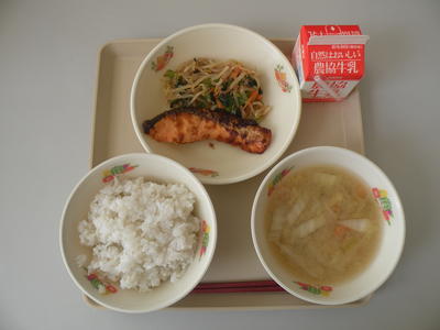 今日の給食は「鮭のみそマヨネーズ焼き」でした!