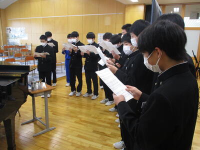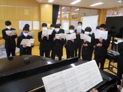 2024年2月9日 16時20分今日から朝の式歌練習が始まりました。今日は男子パートの練習でした。
