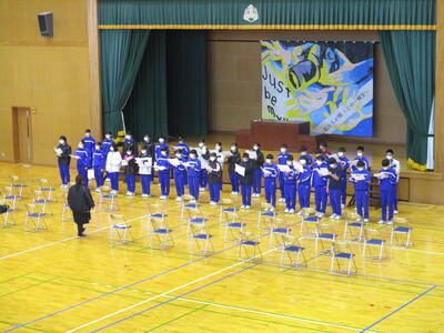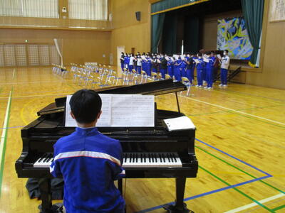 また、5校時には、体育館で式歌練習を行いました。まだ楽譜が手放せませんが、だんだんきれいな合唱にまとまってきました。