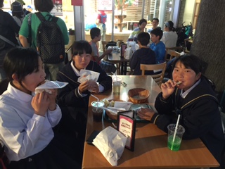 2016年5月18日 12時35分キッザニアでお昼で〜す。ハンバーガーのセットを食べてま〜す。
