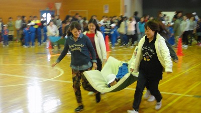 2014年11月11日 15時00分 1学年の親子行事を行いました。台風による休校のため今日に延期しての実施でしたが、たくさんの保護者の方と子どもたちで「ミニ運動会」を行いました。親子玉入れやマットに子どもを乗せて運んでリレーしたりと、たっぷりと親子でふれ合いました。体育館中に子ども達の歓声と熱気があふれていました。