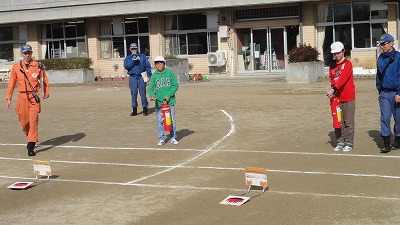 2014年11月14日 15時50分 第二回目の避難訓練を行いました。子どもたちへは事前に知らせずに行いました。今回の想定は、大きな地震の後に火災が起きて校庭に避難するというものでした。緊急地震速報が校舎内に流れ、子どもたちはその場で安全な体勢をとることが今回の訓練の大きな柱でした。全体会では、消防署の職員の方に消火器の使い方を教えていただきました。