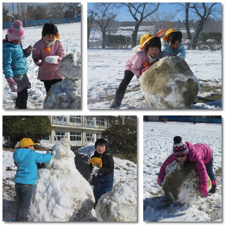ちょうど自分と同じぐらいの雪だるまを作りました。