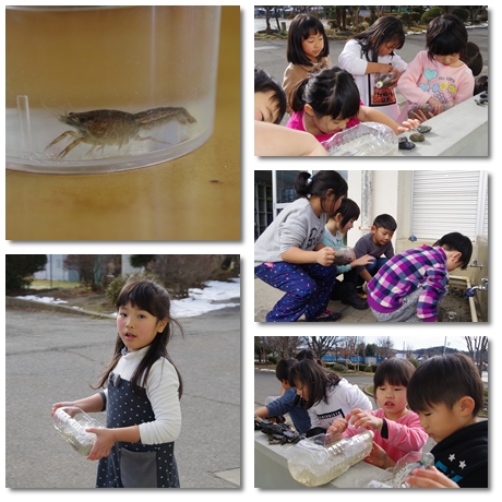 水が冷たかったのですが、かわいいザリガニのためにみんな頑張りました。