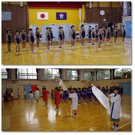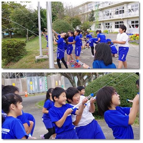 5年生の応援団を中心に、全校生で「フレーフレー」とエールを送りました。