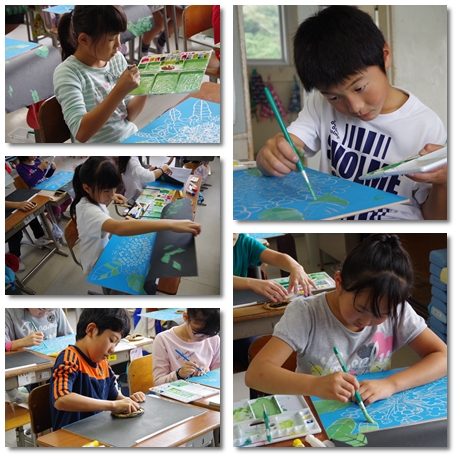4年生は図工の時間に一版多色刷の版画に取り組んでいます。