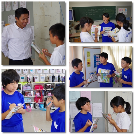 6年生は外国語活動の時間に、行きたい場所を英語でインタビューしあいました。