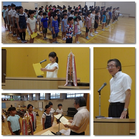 始業式では、校長先生から夏休み前にした3つの約束や、
