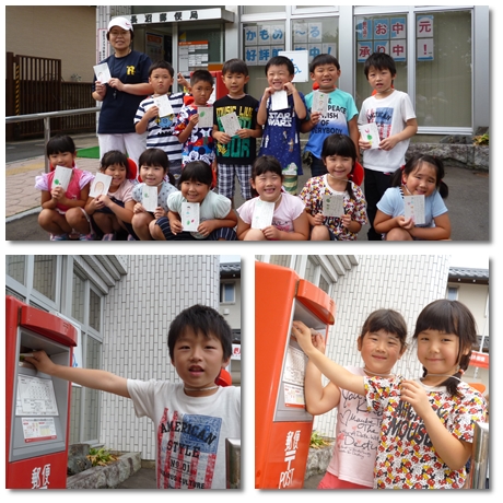 1年生が書写の時間に、暑中見舞いのはがきを書きました。