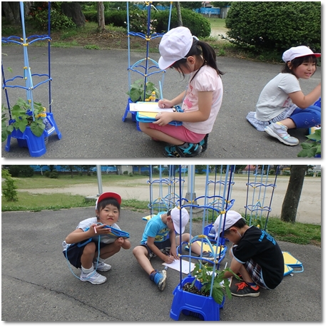 今日は、生活科の時間にアサガオを観察し、記録しました。
