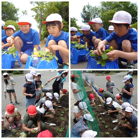また、3・4年生は理科の時間に、ポットで発芽した苗を花壇に植えました。