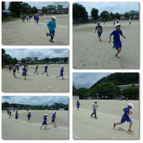 1・2年生に上級生が声をかけて、一緒に走る姿も見られます。