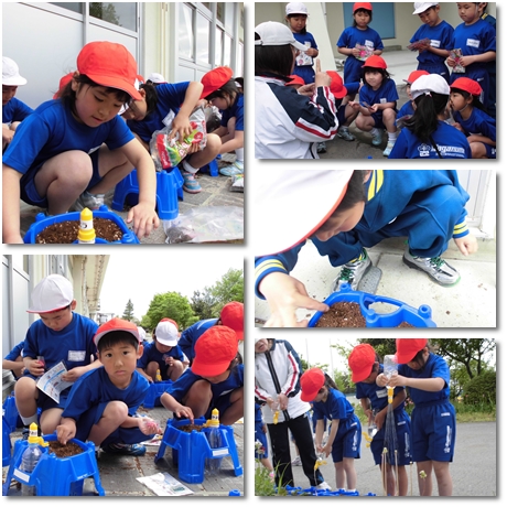 1年生は生活科の時間にアサガオの種まきをしました。