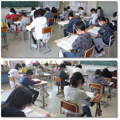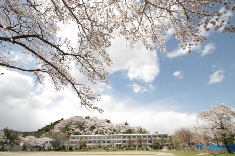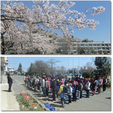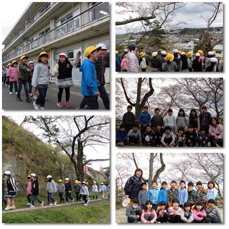 学校の校庭と城山の桜は満開を過ぎ、風が吹くと「はらはら」と花びらが舞い始めました。
