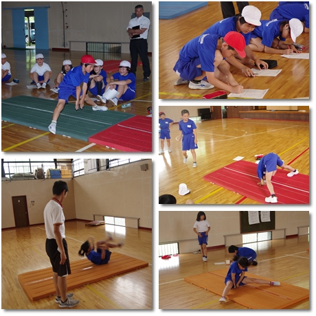 開脚前転や開脚後転などの技が上達するように、練習方法を工夫したり友だちと見合ったりしながら、繰り返し練習しました。