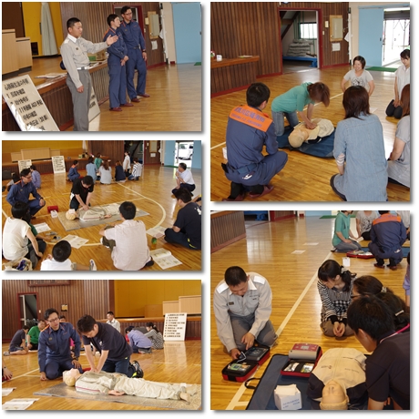 須賀川消防署長沼分署の署員の方を講師に招き、心肺蘇生法とAEDの使用法について学びました。