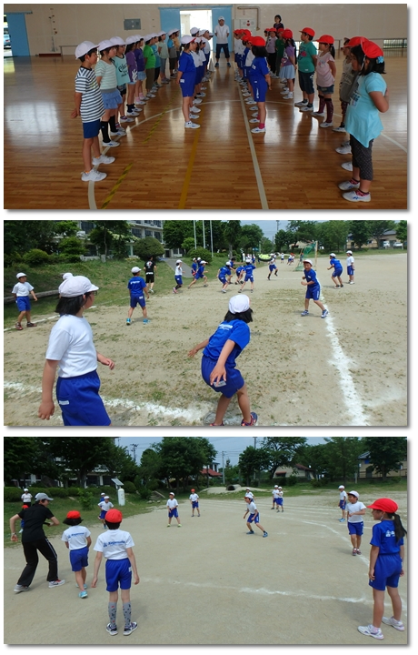 平等に楽しめるように、学年混合の紅白チームで戦いました。