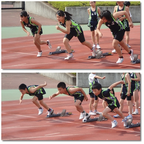 校庭とは違うタータントラックの感触を確認しながら、スタートや中間走の練習、記録測定などを行いました。