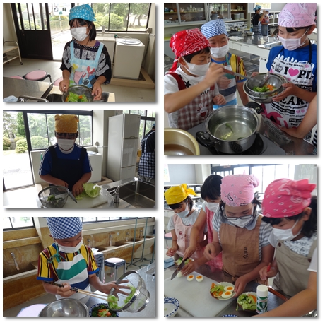5年生は家庭科の時間にゆで卵と温野菜サラダの調理実習を行いました。