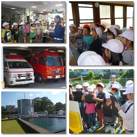 4年生は研修バスに乗って、消防署と浄水場を見学しました。