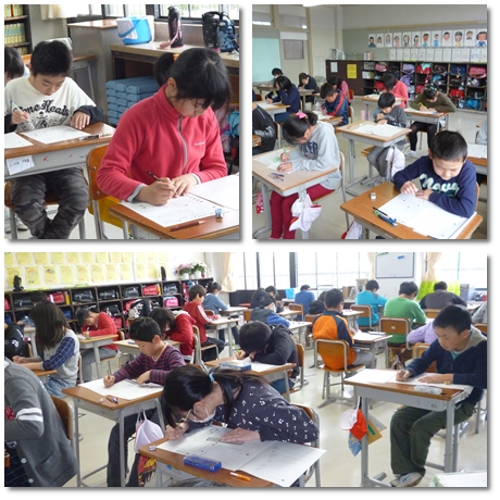 国語算数A、国語B、算数B、質問紙と4時間にわたって、真剣に取り組みました。
