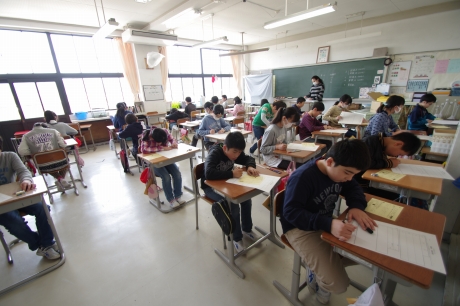 基本の問題や活用力が試される問題などがあり、児童は真剣に解答していました。
