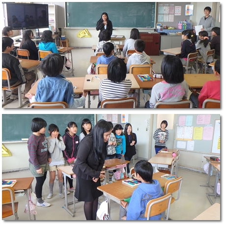さっそく5年生と6年生の教室で外国語活動の授業をしました。