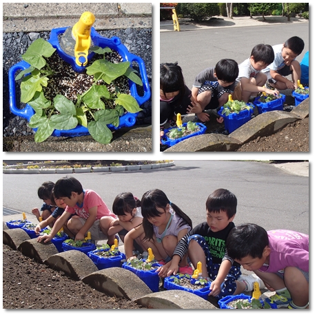 子葉の形をじっくり見て、自分のアサガオにますます興味がわいたようです。
