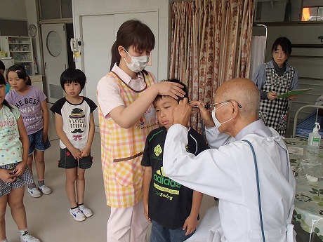 耳鼻科医の先生に来校して頂き、保健室で耳・鼻を検査して頂きました。