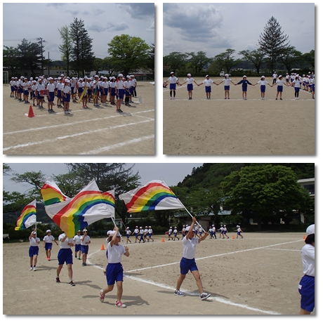 今日は入場行進と開会式、ラジオ体操第一の練習をしました。