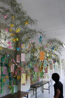 子どもたちや先生方が願いをこめて短冊などを飾りました。