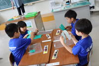 2023年7月11日 12時21分3年生が理科の授業で、ゴムの力を使った実験を行いました。