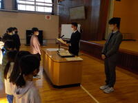 2023年2月27日 08時44分2月27日(月)表彰、全校朝の会がありました。表彰ではたくさんの子どもたちが校長先生より賞状をいただきました。日頃のがんばりの成果が出た結果だと思います。朝の会では校長先生より「3つの構え」についてのお話がありました。何かを始めるには構えが必要で「身構え」「物構え」「心構え」等、スムーズにスタートするための準備の大切さについてでした。年度初めに向けて、児童も職員も今年度のまとめをしながら、反省を生かして来年度の準備を始める時期となりました。