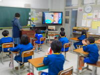 2023年1月13日 12時13分1月13日(金)1年生の研究授業がありました。教科は国語でした。言葉遊び的に文字を付けたして様々な新しい言葉を作ります。友達同士でクイズを出したり、相談したりして、楽しみながら学習していました。