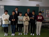 2022年12月21日 13時50分12月21日(水)国道294号江花バイパスの橋名板レプリカ贈呈式が行われました。これは、以前、国道294号江花バイパスの橋の橋名板の文字を募集したところ、複数の応募があり、その中から6名の児童が選ばれ、選ばれた児童の文字が実際の橋の橋名板に採用されたというものです。本日は、県中建設事務所様より採用された児童一人一人に記念の橋名板レプリカをいただきました。所長様より、道に関わる歴史的なお話や、100年もつ橋を作っているお話をしていただきました。100年後も自分たちが書いた橋名板が残るなんてすごい話ですね。