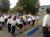 2022年9月27日 17時23分本日、来週開催される陸上交流大会の壮行会が行われました。5年生が中心となって壮行会を進め、全校生から、日頃、練習に取り組む選手に向けて激励のメッセージが送られました。校長先生からは、「『自分の目標』を大切にしてほしい。」というお話がありました。全校生からの激励を受けた選手の代表から、「自分たちを支えてくれた人たちに感謝して、精一杯がんばってきます。」という言葉がありました。いよいよ来週に迫った陸上交流大会。残りの練習もがんばってほしいと思います。