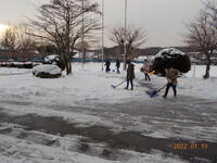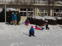 2022年1月13日 12時00分1月13日(木)、朝から子どもたちが一生懸命雪かきをしてくれました。雪が降った日は6年生を中心に自主的に子どもたちが雪かきに参加してくれます。この日も前日も手伝ってくれました。すばらしいです。本当に働き者の子どもたちです。ありがとうございます。そして、休み時間、校庭を見てみると子どもたちが、思いっきり雪遊びを楽しんでいました。雪で濡れないように、防寒のために・・・子どもたちの服装もばっちり雪仕様です。とても楽しそうに雪遊びを楽しんでいました。