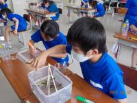 2021年6月3日 07時35分3年生の理科の学習でモンシロチョウやヤゴ,バッタを飼育・観察する単元があります。モンシロチョウの観察が終わったので,昨日からヤゴを飼育することになりました。もう少し後に学習する予定でしたが,トンボは種類によって羽化時期が決まっています。今がベスト!と判断し,飼育開始です。育てるのは「オニヤンマ」と「クロスジギンヤンマ」です。2人~3人のグループでお世話をします。見事に羽化まで持っていけるかな?大事に育てて,生命の神秘に触れ,少しでも自然や生き物に関心をもってくれると嬉しいです。がんばれ3年生!