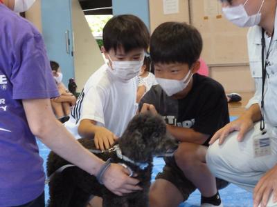 犬に触れたり、心臓の音を聴いたり、子どもたちは大興奮。