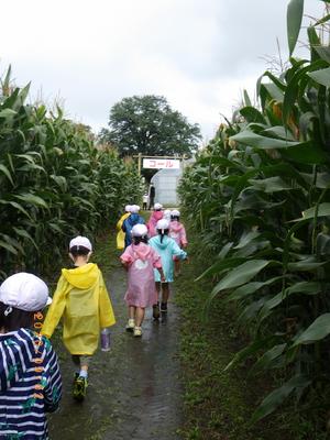 小雨の降るあいにくの天気でしたが、子どもたちは、トウモロコシの迷路や